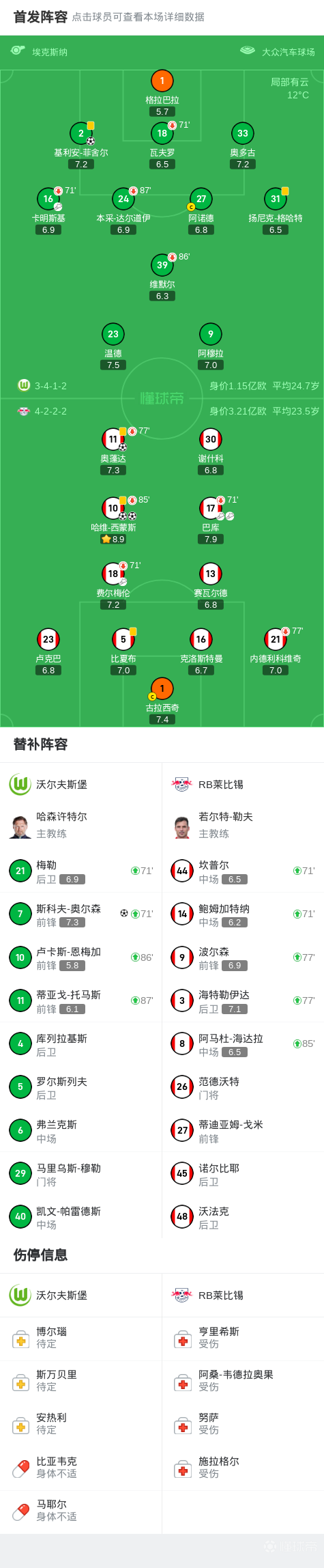 北京时间4月12日,德国足球顶级联赛第29轮,沃尔夫斯堡主场迎战RB莱比锡。比赛开始,双方球员士气高涨,短短几分钟内就展现出激烈的对抗。第11分钟,狼堡后场传球被断,奥蓬达抓住机会低射远角得手,为莱比锡先声夺人,将比分定格在1-0。